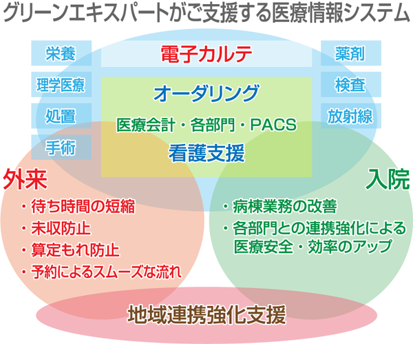 • 各部門システム・医療会計システム・オーダリング・電子カルテまで、必要な対応をご提案いたします。